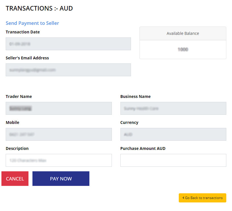 - This is also where you can process payments to other members. Select SEND PAYMENT TO SELLER and enter their details in field.