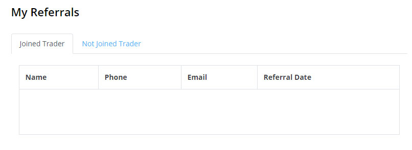 - This shows you a list of all traders you have referred and what they have traded. This area also shows you your downline.