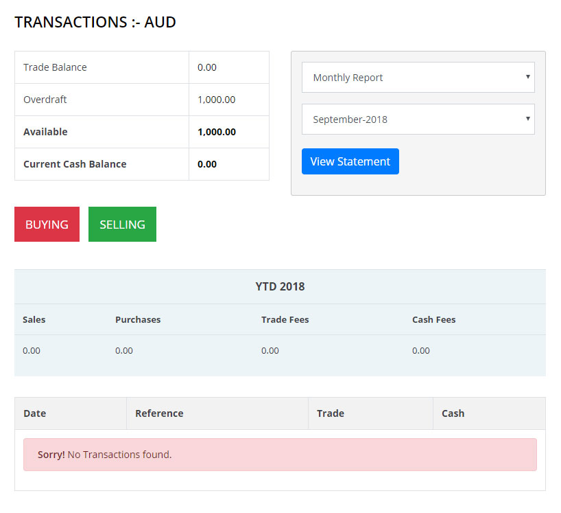 - Where members can view their transaction history and view their current trade and cash balances.